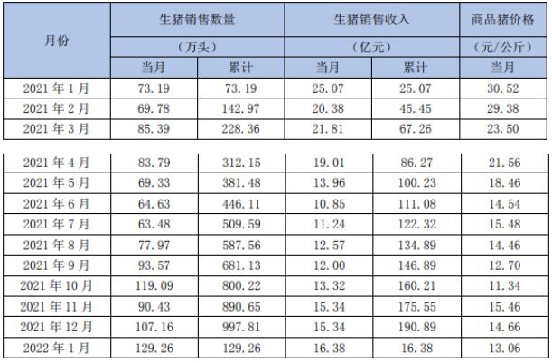 新希望:1月銷售生豬129.26萬頭,銷售收入同比下降34.66%