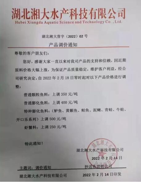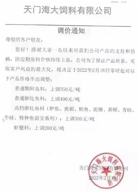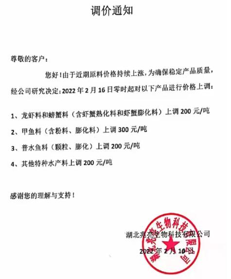 附:虎年華中地區(qū)水產(chǎn)料漲價(jià)消息