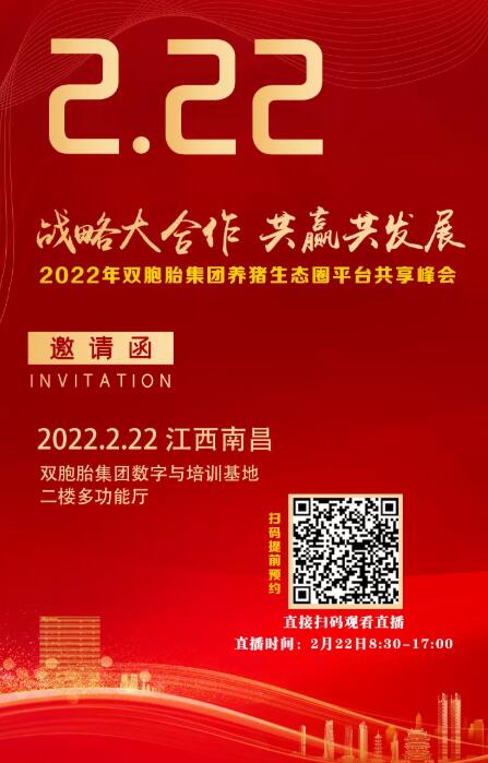 多年來,雙胞胎一直在積極探索與大企業(yè)、大豬場(chǎng)合作的更好模式。為此,雙胞胎集團(tuán)將于本月22日在南昌舉辦以“戰(zhàn)略大合作 共贏共發(fā)展”為主題的養(yǎng)豬生態(tài)圈平臺(tái)共享峰會(huì)。本次峰會(huì)宗旨也是為大家搭建一個(gè)行業(yè)交流探討的高端平臺(tái),共同探討如何抓住時(shí)代機(jī)遇,實(shí)現(xiàn)更好的合作,共贏共發(fā)展!