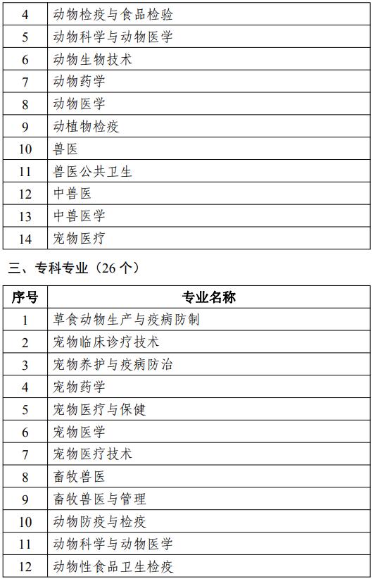 附件:1.獸醫(yī)全科類考試報(bào)考專業(yè)目錄