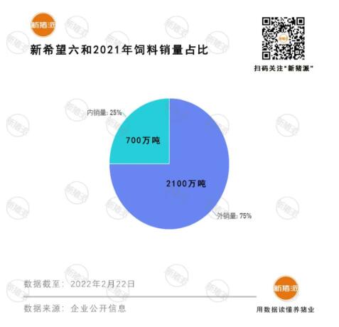 時(shí)至今日,內(nèi)銷(xiāo)已成為新希望六和飼料的重要渠道。據(jù)公告信息,2021年新希望六和飼料銷(xiāo)量2800萬(wàn)噸中,其中內(nèi)銷(xiāo)量700萬(wàn)噸,占總銷(xiāo)量的25%。