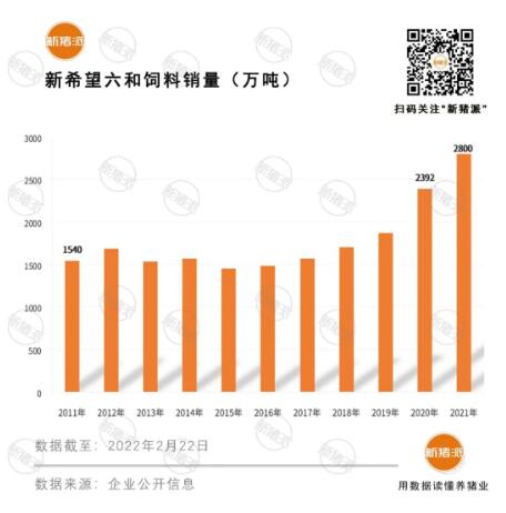 2011年,山東六和資產(chǎn)正式注入新希望六和,在新希望六和飼料發(fā)展史上留下了重要一筆。同年,在六和集團(tuán)及自身發(fā)展加持下,新希望六和飼料銷(xiāo)量躍居全國(guó)第一,并持續(xù)霸榜至今,2021年登頂全球第一。