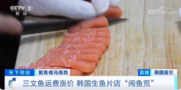 同時,韓國從北歐進口的三文魚價格,也在航空運費的壓力之下飛漲。一些歐洲航空公司為避開受影響的航線,通過繞道把三文魚空運到韓國。在近期國際油價飆升的背景下,更長的飛行時間進一步推高了運輸成本。就在過去這一周,韓國進口三文魚價格暴漲約六成。部分生魚片店不得不把招牌菜“挪威三文魚”從菜單中去掉,還有餐廳取消了三文魚沙拉。