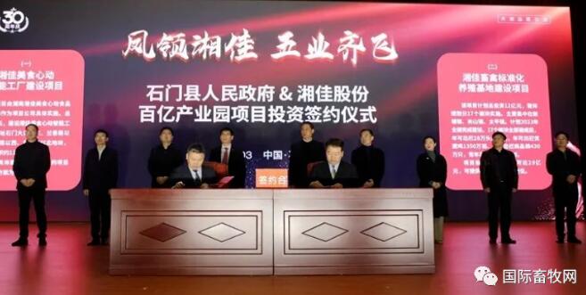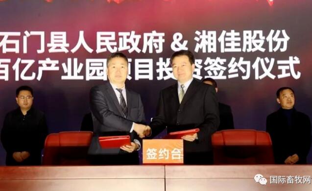 在當(dāng)日舉行的簽約儀式上,石門縣人民政府縣長(zhǎng)丁克剛與湘佳股份董事長(zhǎng)兼總裁喻自文就湘佳美食心動(dòng)智能工廠建設(shè)新項(xiàng)目和湘佳畜禽標(biāo)準(zhǔn)化養(yǎng)殖基地建設(shè)項(xiàng)目成功簽約。