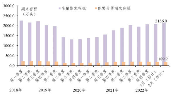 廣東生豬、能繁母豬期末存欄量走勢(shì)圖