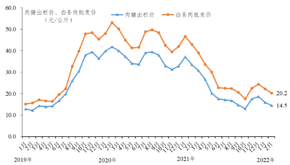 廣東肉豬出欄價(jià)、白條肉批發(fā)價(jià)走勢(shì)圖