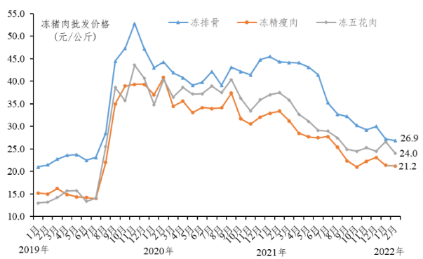凍豬肉成交量下降。春節(jié)前夕凍肉批發(fā)商備貨充足,外加豬價(jià)持續(xù)下降,2月各批發(fā)商減少備貨量,據(jù)省農(nóng)業(yè)信息監(jiān)測(cè)體系數(shù)據(jù),凍精瘦肉、凍五花肉和凍排骨成交量環(huán)比分別下降4.3%、8.1%和5.6%。