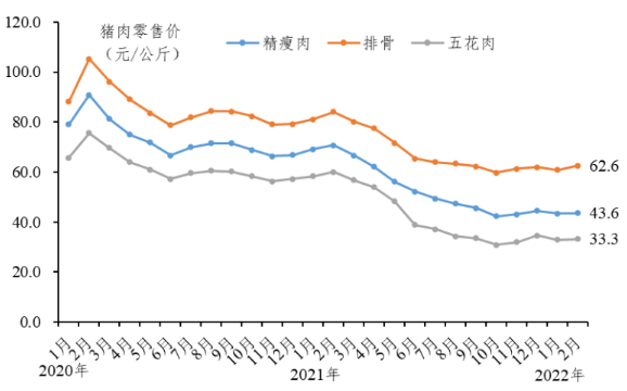 三、肉豬出欄月均價(jià)、白條肉月均價(jià)下降,豬肉月均零售價(jià)小幅上漲