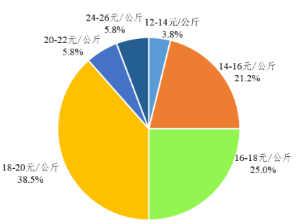 養(yǎng)殖成本環(huán)比下降,自繁自養(yǎng)基地虧損。據(jù)省農(nóng)業(yè)信息監(jiān)測(cè)體系數(shù)據(jù),2月肉豬養(yǎng)殖成本降至18.2元/公斤,環(huán)比下降2.9%,自繁自養(yǎng)基地虧損?;仞B(yǎng)殖成本集中在14-22元/公斤,占90.4%,其中16-18元/公斤、18-20元/公斤的基地占比分別為25.0%、38.5%。僅17.3%自繁自養(yǎng)基地仍有微利,環(huán)比下降18.4個(gè)百分點(diǎn)。