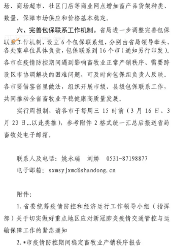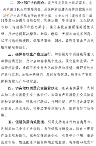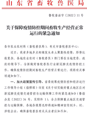 通知要求山東各地農(nóng)業(yè)農(nóng)村(畜牧獸醫(yī))部門要主動(dòng)加強(qiáng)與當(dāng)?shù)毓?、交通運(yùn)輸、市場監(jiān)管、衛(wèi)生健康等部門溝通協(xié)作和信息共享,強(qiáng)化部門協(xié)作配合,強(qiáng)化畜牧業(yè)重要性的思想認(rèn)識,及時(shí)協(xié)調(diào)解決堵路、封路、斷路、無理由勸返等問題,切實(shí)打通運(yùn)輸梗阻,保障活畜禽、飼料、獸藥及畜禽產(chǎn)品運(yùn)輸車輛順暢通行。