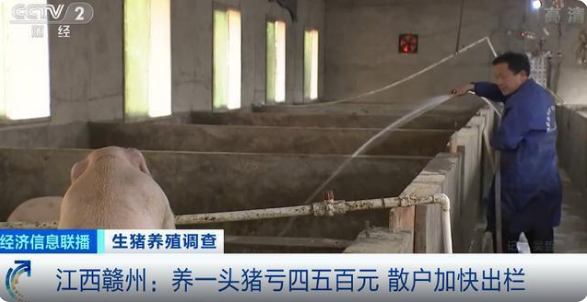 江西省贛州市會(huì)昌縣文武壩鎮(zhèn)南坑村生豬養(yǎng)殖戶康蔚祥:現(xiàn)在養(yǎng)一頭豬虧四五百元左右。