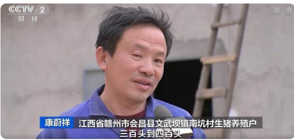 江西省贛州市會(huì)昌縣文武壩鎮(zhèn)南坑村生豬養(yǎng)殖戶康蔚祥:現(xiàn)在買飼料一個(gè)月差不多要三萬(wàn)元,豬飼料又漲得很厲害,一噸差不多漲了一百元。