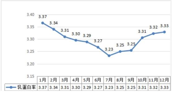 圖3 2021年黑龍江省全年乳蛋白率變動曲線圖