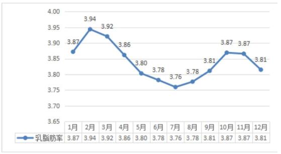 黑龍江省奶業(yè)協(xié)會對生乳品質(乳脂肪、乳蛋白、菌落總數和體細胞數)進行持續(xù)跟蹤統(tǒng)計,85%以上的奶牛場生乳指標超過美國標準,60%的奶牛場接近歐盟標準,個別優(yōu)質牧場的生乳品質已超過歐盟標準。2021年全年變動情況如下,在6、7、8、9月份的乳脂肪和乳蛋白兩項指標都略有降低,分析為夏季熱應激造成的結果。