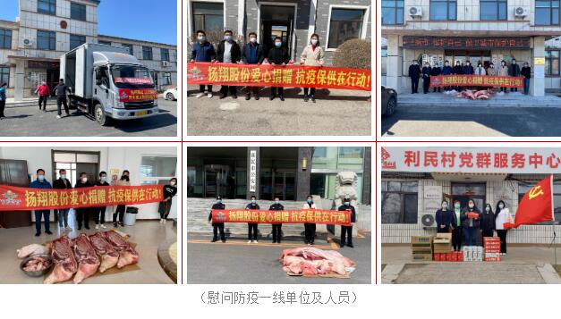 揚翔股份北方區(qū)總裁孫文平總裁表示:“揚翔公司希望能為社會貢獻自己的一份力量,為抗疫一線捐贈豬肉,希望能用我們企業(yè)的綿薄之力,為抗疫一線的工作人員們帶來信心,也為奮戰(zhàn)在一線的防疫人員帶來一份健康安全的飲食保障。”