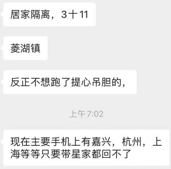 浙江湖州拉魚的貨車司機(jī)張師傅表示,如果去了嘉興、杭州、上海等地,行程碼帶星,連家都回不了。他現(xiàn)在就被隔離3+11天,表示不想跑了,提心吊膽的。