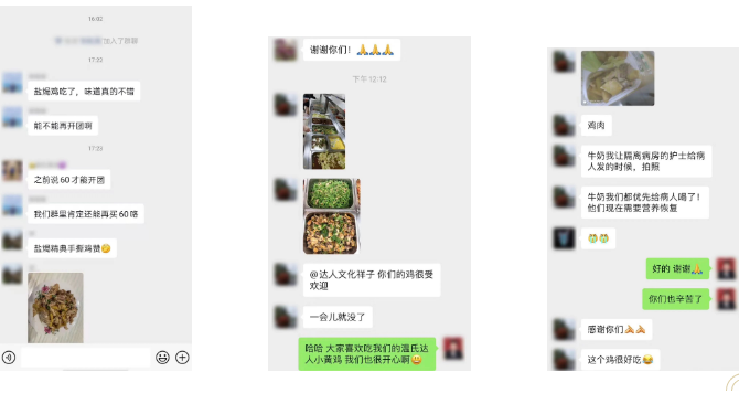 在上海市區(qū)配送方面,公司借助原有熟食連鎖客戶的物流配送線,實(shí)現(xiàn)了上海市內(nèi)社區(qū)配送點(diǎn)直達(dá)。自3月下旬以來(lái),公司聯(lián)合熟食連鎖客戶重點(diǎn)開(kāi)拓團(tuán)購(gòu)渠道,主動(dòng)招募團(tuán)長(zhǎng),通過(guò)各個(gè)團(tuán)購(gòu)渠道,公司日均供應(yīng)熟雞超過(guò)20000只。