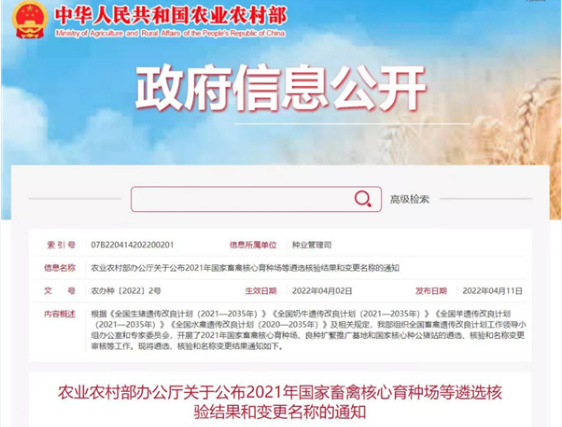 近日,農業(yè)農村部辦公廳發(fā)布了《關于公布2021年國家畜禽核心育種場等遴選核驗結果和變更名稱的通知》,這是繼2011年成功遴選后,廣西揚翔股份有限公司再次通過國家生豬核心育種場5年到期換證核驗。