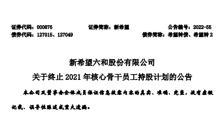 4月28日,公司堅定做大做強養(yǎng)豬業(yè)務(wù)的中長期戰(zhàn)略目標(biāo)不變,但隨著今年外部環(huán)境的變化,從長期價值考慮,公司將更加注重有質(zhì)量的增長,堅持發(fā)展節(jié)奏與豬群基礎(chǔ)、隊伍建設(shè)、管理能力相匹配,確保有效、有質(zhì)量的出欄數(shù)量和經(jīng)營結(jié)果。鑒于此,公司經(jīng)審慎研究,決定終止實施本次核心骨干持股計劃,公司回購的股份將繼續(xù)用于激勵公司的核心團隊。