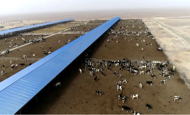 四團永寧鎮(zhèn)田園特色小鎮(zhèn)萬頭奶源基地建設項目位于四團永寧鎮(zhèn)十連,2021年4月開工建設,項目擬投資4.5億元,規(guī)劃建設總存欄規(guī)模10000頭奶牛養(yǎng)殖場,投產(chǎn)后,可實現(xiàn)年產(chǎn)優(yōu)質(zhì)生鮮乳5萬噸,年產(chǎn)值2.89億元。截至目前,已完成兩棟草料棚、十座青貯窖、一座精料庫、兩棟青年牛舍的建設,引進荷斯坦奶牛1999頭。