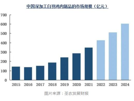 在圣農(nóng)發(fā)展看來(lái),隨著餐飲供應(yīng)鏈?zhǔn)巢臉?biāo)準(zhǔn)化和商超經(jīng)營(yíng)業(yè)態(tài)升級(jí),雞肉加工制品在雞肉總產(chǎn)量中的占比有望逐漸提升,雞肉制品行業(yè)的規(guī)模擴(kuò)張有望加速。