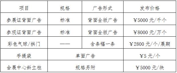 3m×3m展位:6000元/9㎡,角展6800元/9㎡。(費用包括:會刊制作費、場地費、三面圍板、門楣及兩只射燈、一個電源插座(220V/15A)、一桌兩椅、清潔費、保安費、代表證等。)