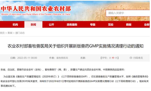 (一)停止獸藥生產(chǎn)活動。截止2022年6月1日零時,凡未通過新版獸藥GMP檢查驗收的獸藥生產(chǎn)企業(yè)(生產(chǎn)車間),一律停止獸藥生產(chǎn)活動,國家獸藥追溯系統(tǒng)將關(guān)閉其獸藥產(chǎn)品二維碼申請功能、產(chǎn)品入庫功能;6月1日零時前生產(chǎn)的獸藥產(chǎn)品,在產(chǎn)品有效期內(nèi)可繼續(xù)銷售,國家獸藥追溯系統(tǒng)保留其獸藥產(chǎn)品出庫功能。