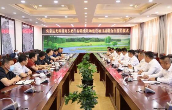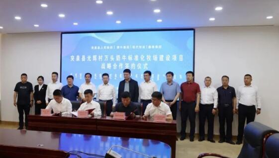 5月27日下午,現(xiàn)代牧業(yè)攜手突泉縣人民政府、蒙牛集團及鑫泰集團共同舉辦突泉縣萬頭奶牛標準化牧場建設項目戰(zhàn)略合作簽約儀式。