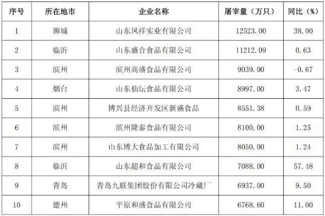 其中,肉雞屠宰量前10的企業(yè)為: