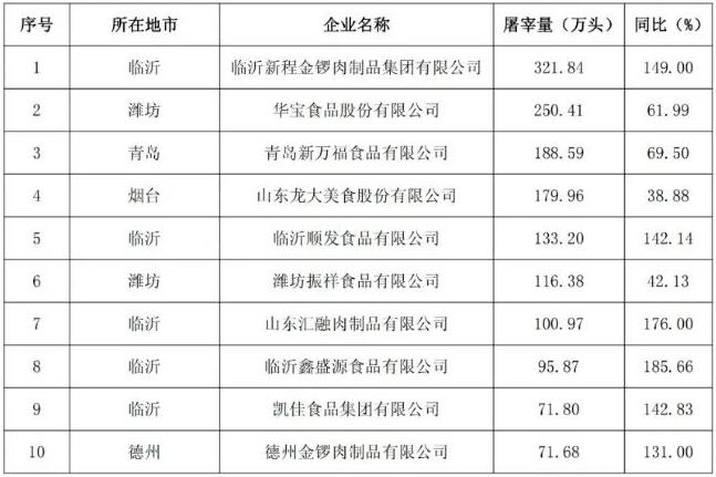 生豬屠宰量前10的企業(yè)為: