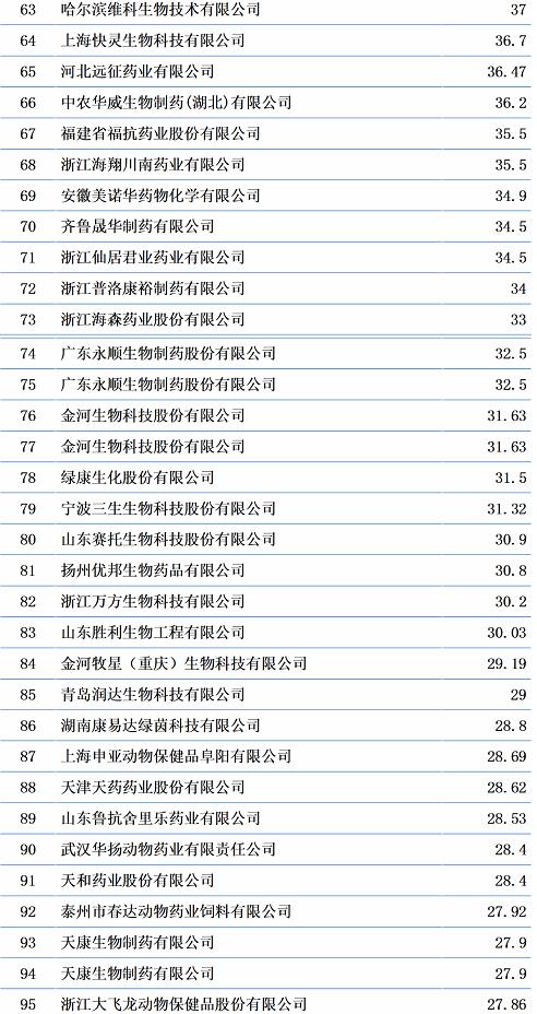 科技創(chuàng)新能力將是獸藥行業(yè)未來發(fā)展強有力的競爭因素,筆者通過企查查匯總了566家獸藥生產企業(yè)的科技創(chuàng)新總含量,以下是前100名。