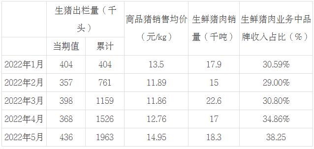 中糧家佳康6月10日公布2022年5月運(yùn)營(yíng)快報(bào)。公司5月生豬出欄量43.6萬(wàn)頭;商品豬銷(xiāo)售均價(jià)人民幣14.95元/公斤,生鮮豬肉銷(xiāo)量1.83萬(wàn)噸,生鮮豬肉業(yè)務(wù)中品牌收入占比為38.25%。