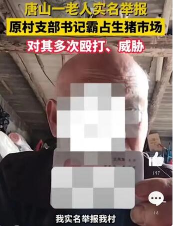 6月13日,北京青年報(bào)、長沙政法頻道報(bào)道稱,6月12日,河北唐山一六旬農(nóng)村老人武風(fēng)元,發(fā)布視頻實(shí)名舉報(bào)路南區(qū)漢沽漢豐鎮(zhèn)皂甸村原村支部書記兼村長,該書記霸占生豬市場,嚴(yán)禁任何收豬商販進(jìn)入該村,如有發(fā)現(xiàn),則采取砸車、打人措施。同時,還伙同其兄與侄子將村里的生豬、母豬收購價格壓至極低,武風(fēng)元不愿出售自己的生豬,該書記帶人一天之內(nèi)圍毆了武風(fēng)元兩次。
