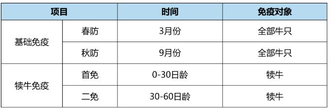 常規(guī)免疫:每年3月份、9月份建議所有牛只普免5頭份山羊痘活疫苗;犢牛出生即可免疫5頭份山羊痘疫苗,21~30天加強一次;非疫區(qū)地區(qū),為減少工作量,提高免疫效率,犢??山M批免疫。