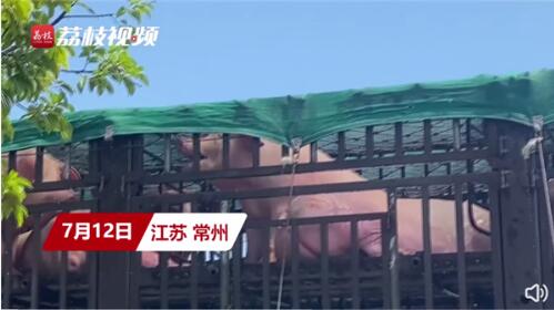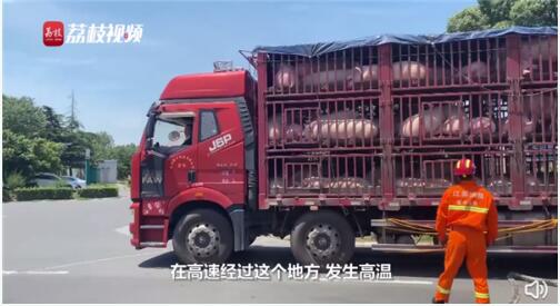 近日,江蘇常州一男子撥打119求助,有2車從內(nèi)蒙古準(zhǔn)備運到浙江的豬途經(jīng)常州被“熱懵了”,急需降溫。