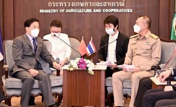 中國駐泰大使韓志強(qiáng)(左)與泰國農(nóng)合社部長察霖猜(右)