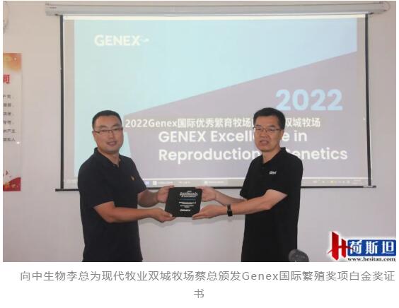 2020年向中生物推薦現(xiàn)代牧業(yè)通遼牧場參加評比,獲得成母牛組金獎和青年牛組白金獎。2021年,Genex國際繁殖獎項把成母牛和青年牛綜合考慮,不再分開評獎,現(xiàn)代牧業(yè)雙城牧場獲得白金獎。