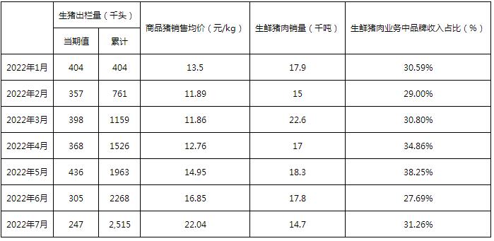 中糧家佳康8月9日公布2022年7月運營快報。公司7月生豬出欄量24.7萬頭;商品豬銷售均價人民幣22.04元/公斤,生鮮豬肉銷量1.47萬噸,生鮮豬肉業(yè)務中品牌收入占比為31.26%。