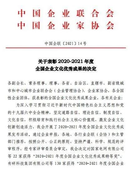 據(jù)悉,全國企業(yè)文化優(yōu)秀成果評選是經(jīng)中央九部委清理整頓評比達標表彰后批準保留的評選表彰項目,也是全國企業(yè)文化領(lǐng)域唯一保留的表彰項目,每兩年舉辦一屆,屬于國家級獎項。