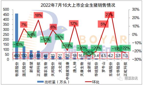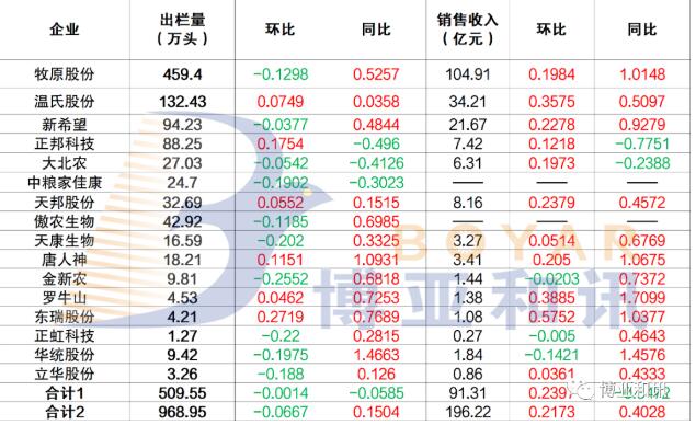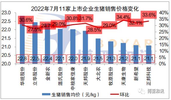 7月5日,全國(guó)生豬日均價(jià)沖高24元/kg,月均價(jià)22.53元/kg,環(huán)比上漲34.44%,同比上漲42.21%。上市企業(yè)生豬銷(xiāo)量環(huán)比雖降,但銷(xiāo)售收入環(huán)比多增長(zhǎng)。金新農(nóng)、華統(tǒng)股份、正虹科技由于生豬銷(xiāo)量的減少,導(dǎo)致銷(xiāo)售收入環(huán)比下降,而牧原股份、新希望、大北農(nóng)、天康生物等企業(yè)生豬銷(xiāo)量雖減,但銷(xiāo)售收入環(huán)比仍增長(zhǎng)。
