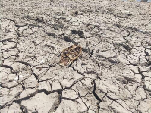 君山區(qū)漁政一名工作人員告訴極目新聞?dòng)浾?,這是近50年來(lái)洞庭湖遭遇干旱最嚴(yán)重的一次,很多魚(yú)類被困在小水塘里,加上溫度高,魚(yú)死得比較多,連一些十多斤的大魚(yú)都已死亡。近期,他們的主要工作就是巡查洞庭湖中的未干涸的水塘,發(fā)現(xiàn)死魚(yú)后及時(shí)進(jìn)行打撈,再將死魚(yú)集中進(jìn)行掩埋,以免污染水質(zhì)。