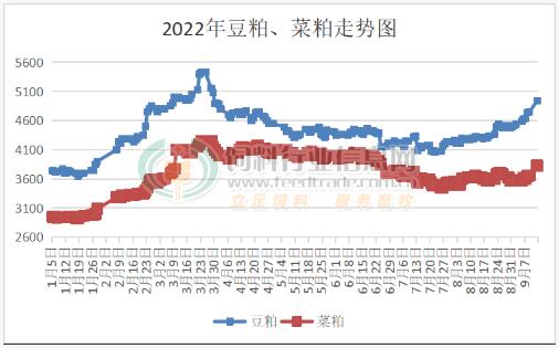 受美盤大豆走勢(shì)影響,今日連盤豆粕開盤后強(qiáng)勢(shì)跳漲,截止收盤主力2301合約收4060元/噸,漲221元/噸,漲幅為5.76%。豆粕現(xiàn)貨最高上漲高達(dá)260元/噸,局地最高價(jià)格突破5000元大關(guān),今日全國(guó)豆粕現(xiàn)貨均價(jià)上漲至4940元/噸,較上日漲190元/噸,較上月底上漲465元/噸。