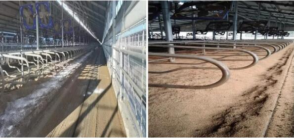 牧場(chǎng)臥床墊料現(xiàn)在主要使用烘干糞末和稻殼。臥床墊料要求干燥、充足、平整。臥床定期消毒,消毒采用生石灰,因?yàn)樯业臍⒕Ч诲e(cuò),而且它有一定的吸潮功能。但是需要注意,使用生石灰時(shí)一定要把它和糞末攪拌均勻,因?yàn)樯以谖边^(guò)程中會(huì)發(fā)熱,可能會(huì)燒傷奶牛乳頭。
