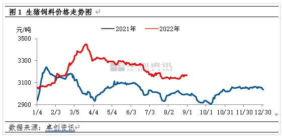 今年前8個(gè)月生豬飼料價(jià)格先揚(yáng)后抑 2022年1-8月份生豬飼料價(jià)格呈現(xiàn)先漲后降的走勢(shì),最高價(jià)為3月26日的3408.33元/噸,最低價(jià)為1月6日的3047.90元/噸。截至8月31日,生豬飼料均價(jià)為3171.21元/噸,較年初漲幅3.80%,同比漲幅5.83%;1-8月份生豬飼料價(jià)格平均為3226.76元/噸,同比漲幅5.51%。