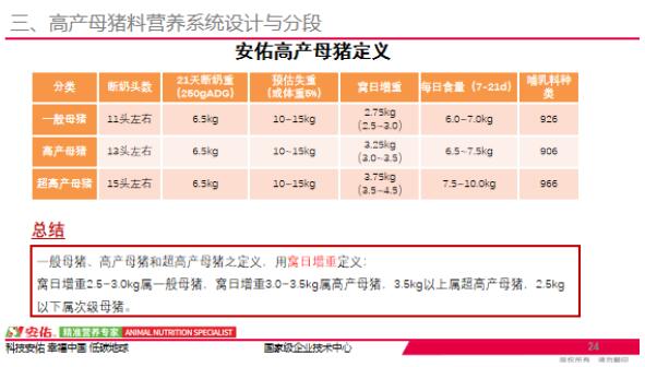 母豬性能要好,后備母豬、母豬生產(chǎn)前后的營(yíng)養(yǎng)需求也應(yīng)該被兼顧。高產(chǎn)母豬料的產(chǎn)品設(shè)計(jì),需要考慮三大問(wèn)題,一是系統(tǒng)分段精準(zhǔn)飼喂。二是系統(tǒng)營(yíng)養(yǎng)設(shè)計(jì)配方。三是系統(tǒng)監(jiān)控霉菌毒素。
