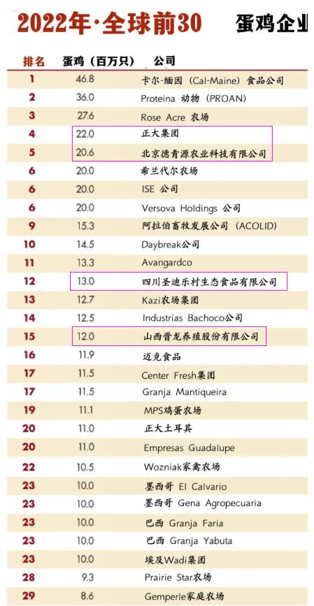 2022全球TOP家禽生產(chǎn)企業(yè)排行榜出爐!溫氏、禾豐、圣農(nóng)等企業(yè)上榜