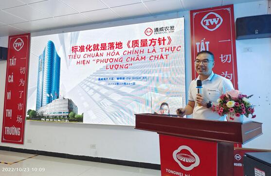和平通威總經(jīng)理衛(wèi)星、海陽通威副總經(jīng)理何正國對公司標(biāo)準(zhǔn)化一階段工作進(jìn)行匯報。并對標(biāo)準(zhǔn)化項目組給予的大力指導(dǎo)與支持表示衷心的感謝,表示標(biāo)準(zhǔn)化工作驗收通過只是起點,后續(xù)常態(tài)化才是重點,要求公司全體人員認(rèn)真整改,將標(biāo)準(zhǔn)化工作常態(tài)化。公司將深度貫徹落實標(biāo)準(zhǔn)化點檢工作,讓“標(biāo)準(zhǔn)化”從清掃、清潔到提升全員的素養(yǎng),同時把建設(shè)標(biāo)準(zhǔn)化的精神運用到公司經(jīng)營工作的其他方面,最終實現(xiàn)公司的各項經(jīng)營指標(biāo)提升。