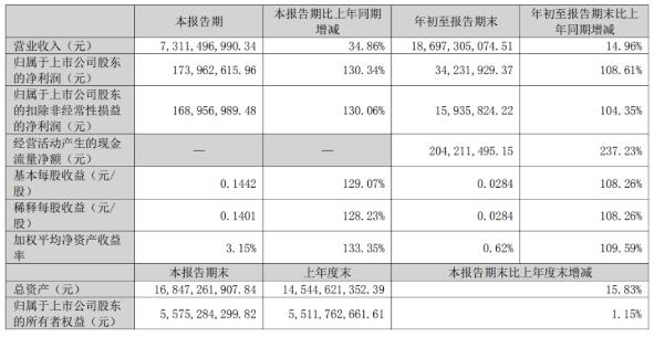 前三季度實(shí)現(xiàn)營(yíng)業(yè)收入186.97億元,同比增長(zhǎng)14.96%;實(shí)現(xiàn)歸屬于上市公司股東的凈利潤(rùn)虧損3423萬元,同比增108.61%。