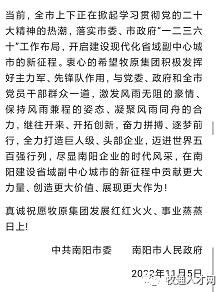 11月5日,南陽日報公眾號發(fā)布了一封南陽官方給牧原創(chuàng)立30周年的賀信。