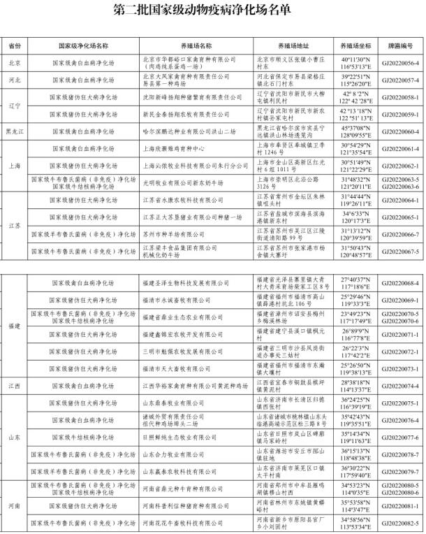 農(nóng)業(yè)農(nóng)村部公布第二批國家級動物疫病凈化場名單,溫氏、新希望等榜上有名